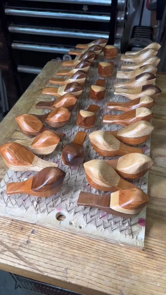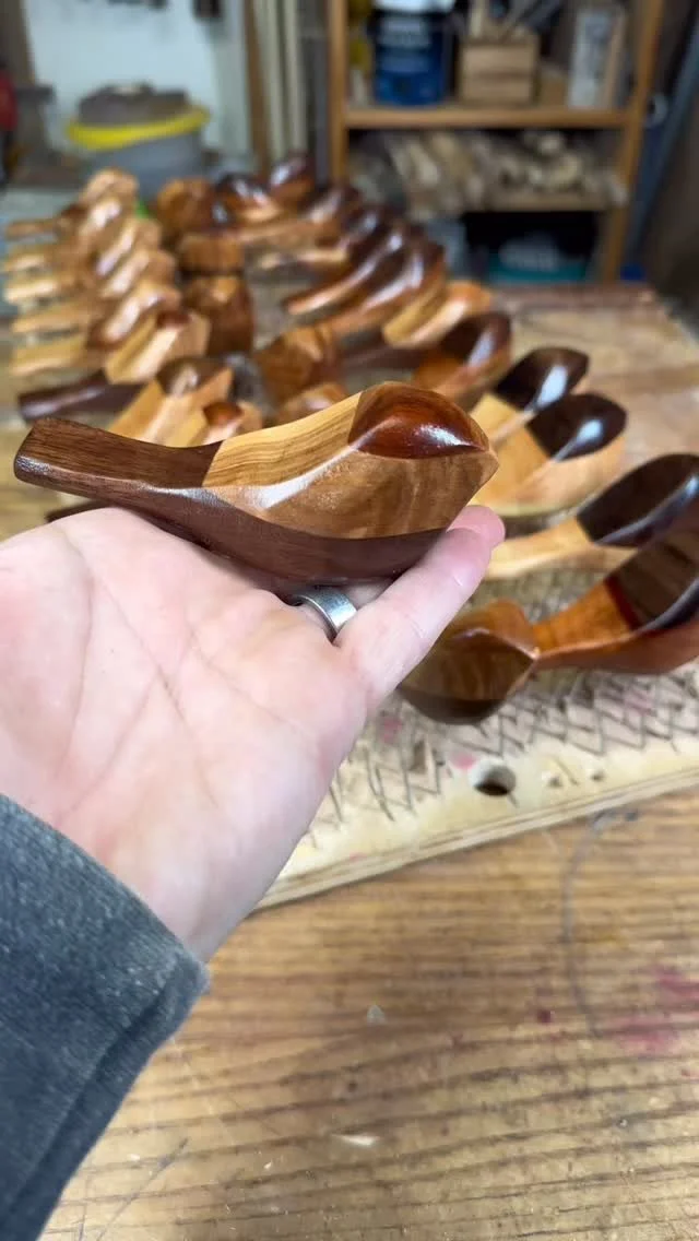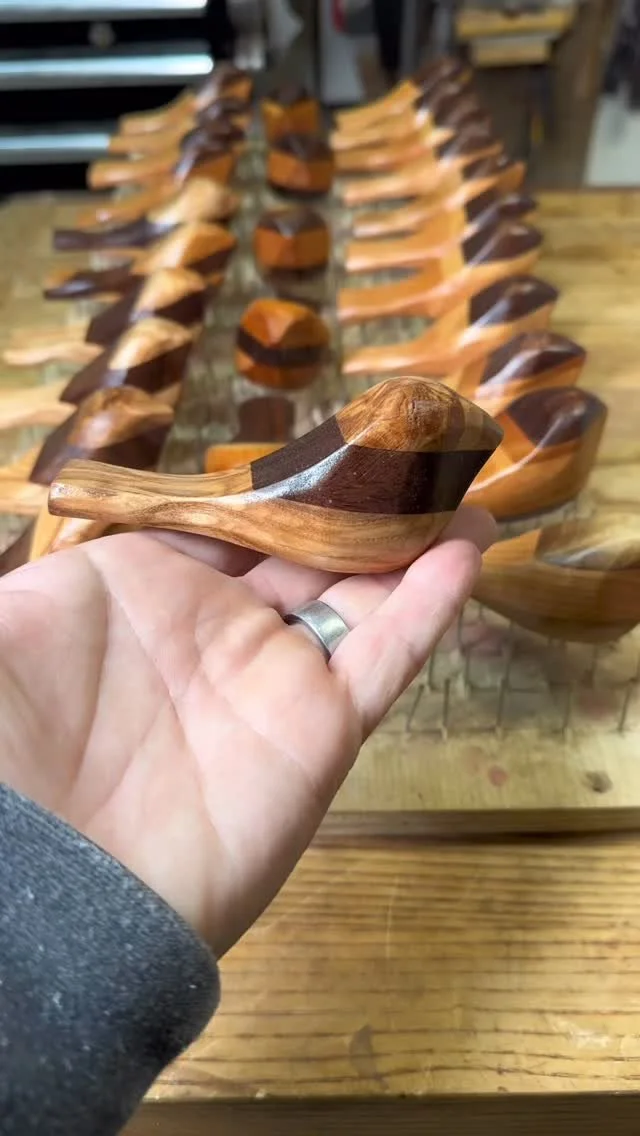 Round 1 of sine of my favorite things this year. Most of these are made from scraps. #scrapwoodprojects #leahhoughtalingwoodworking #woodworker #glassbird
